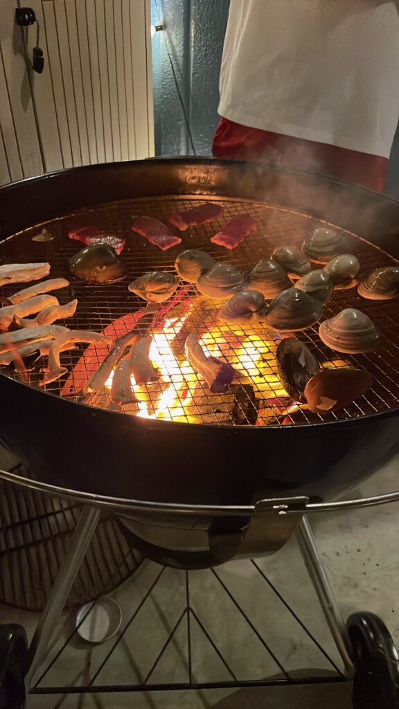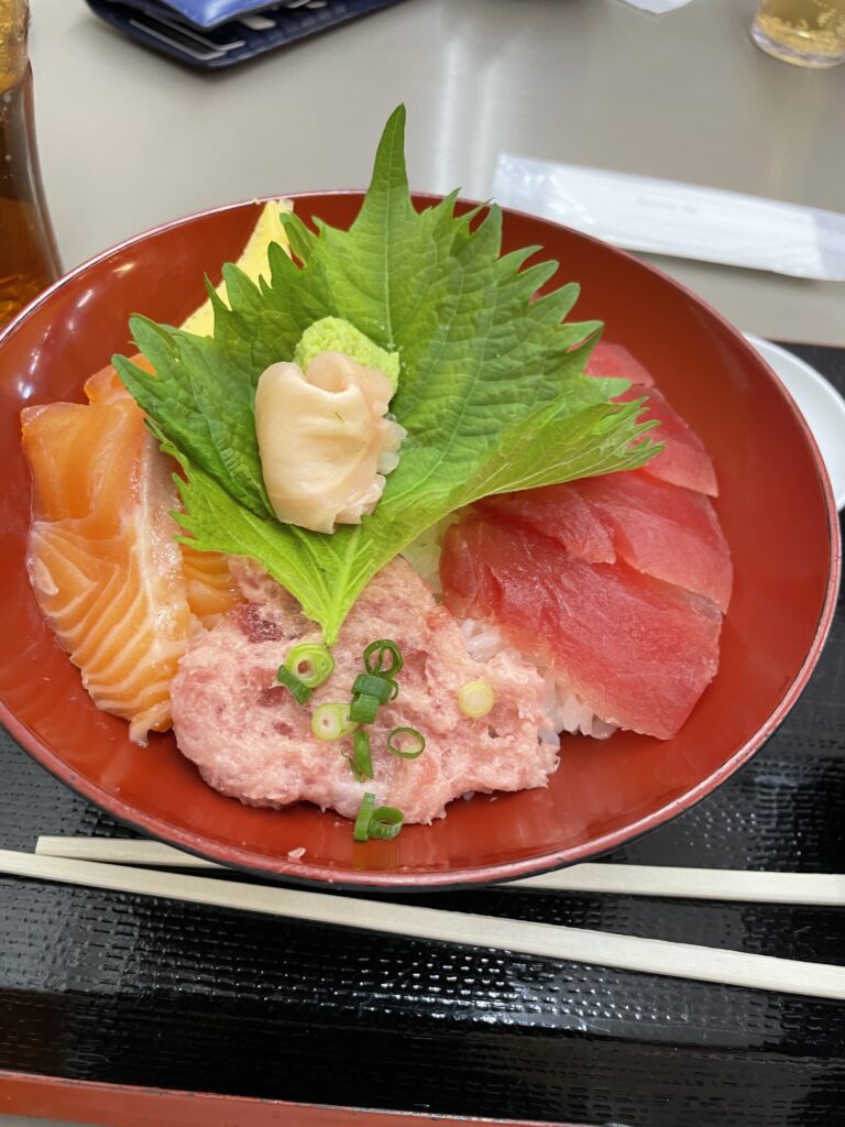 宿泊先に行く道中にあったお店で海鮮丼をみんなで食ったり、好きなだけ海鮮や肉を買ったり(生簀みたいな写真撮るの忘れた)